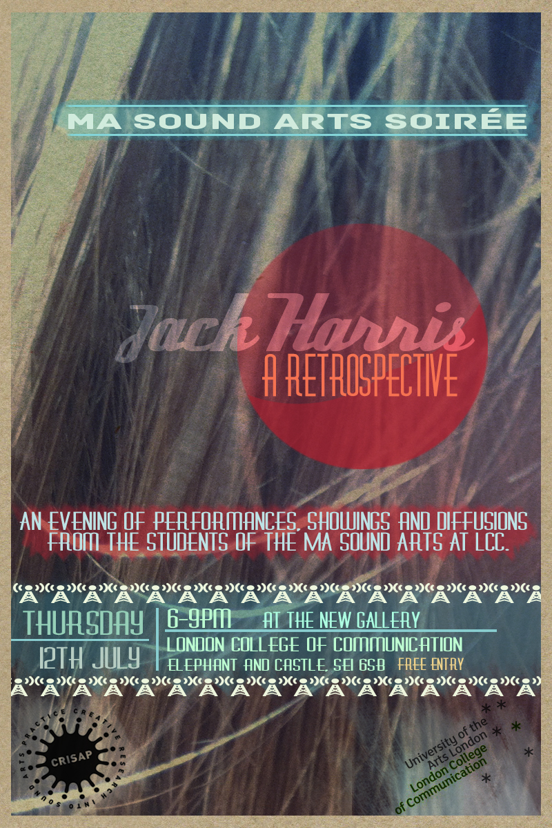 An evening of performances, showings and diffusions of work from the students of the MA Sound Arts at London College of Communication, University of the Arts London.